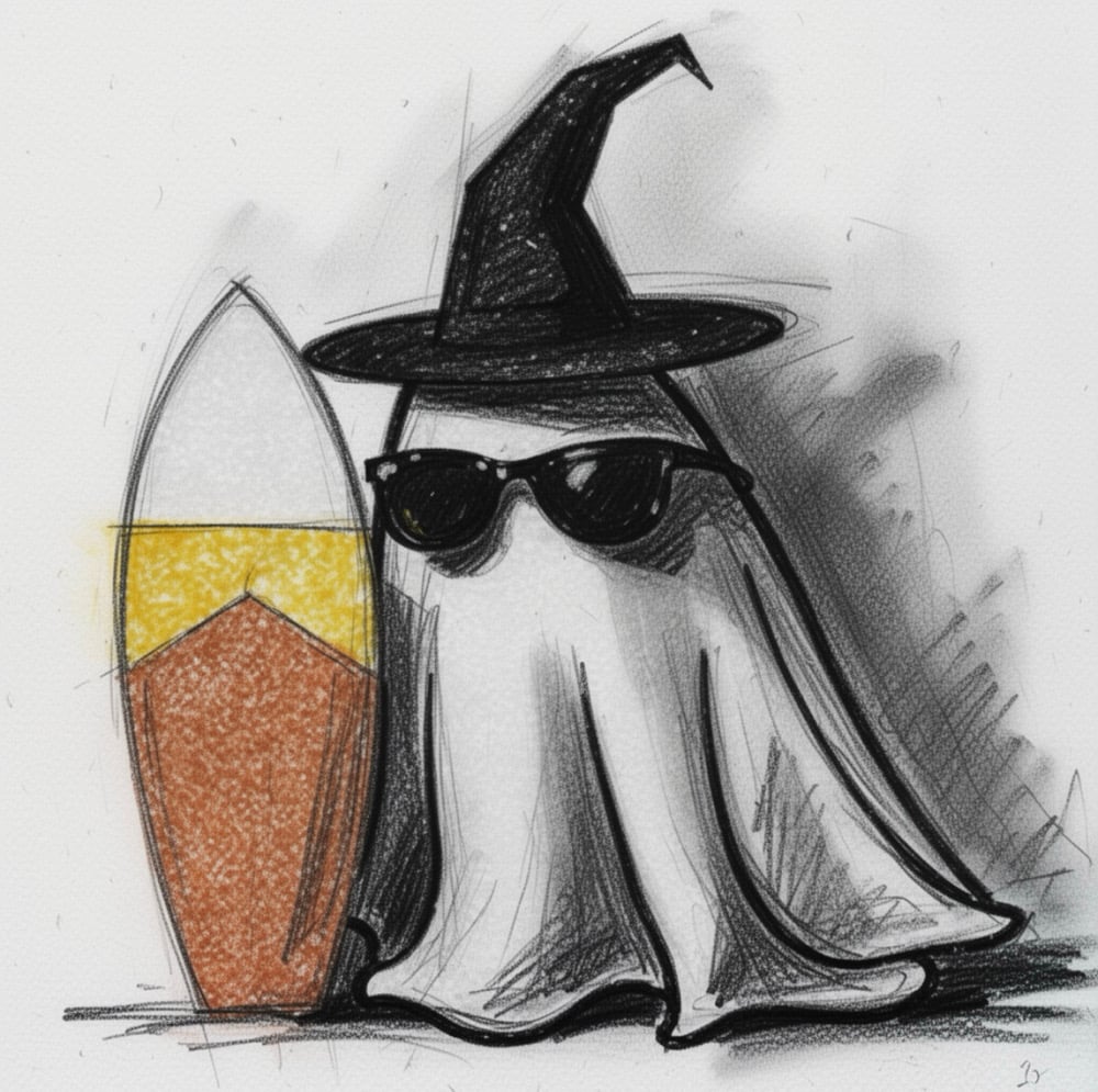 Ghost witch going surfing stickers